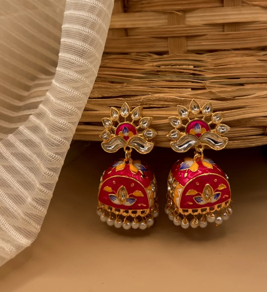 Ruhaniyat Mehroon – Mehendi Polish Enameled Bell Jhumka