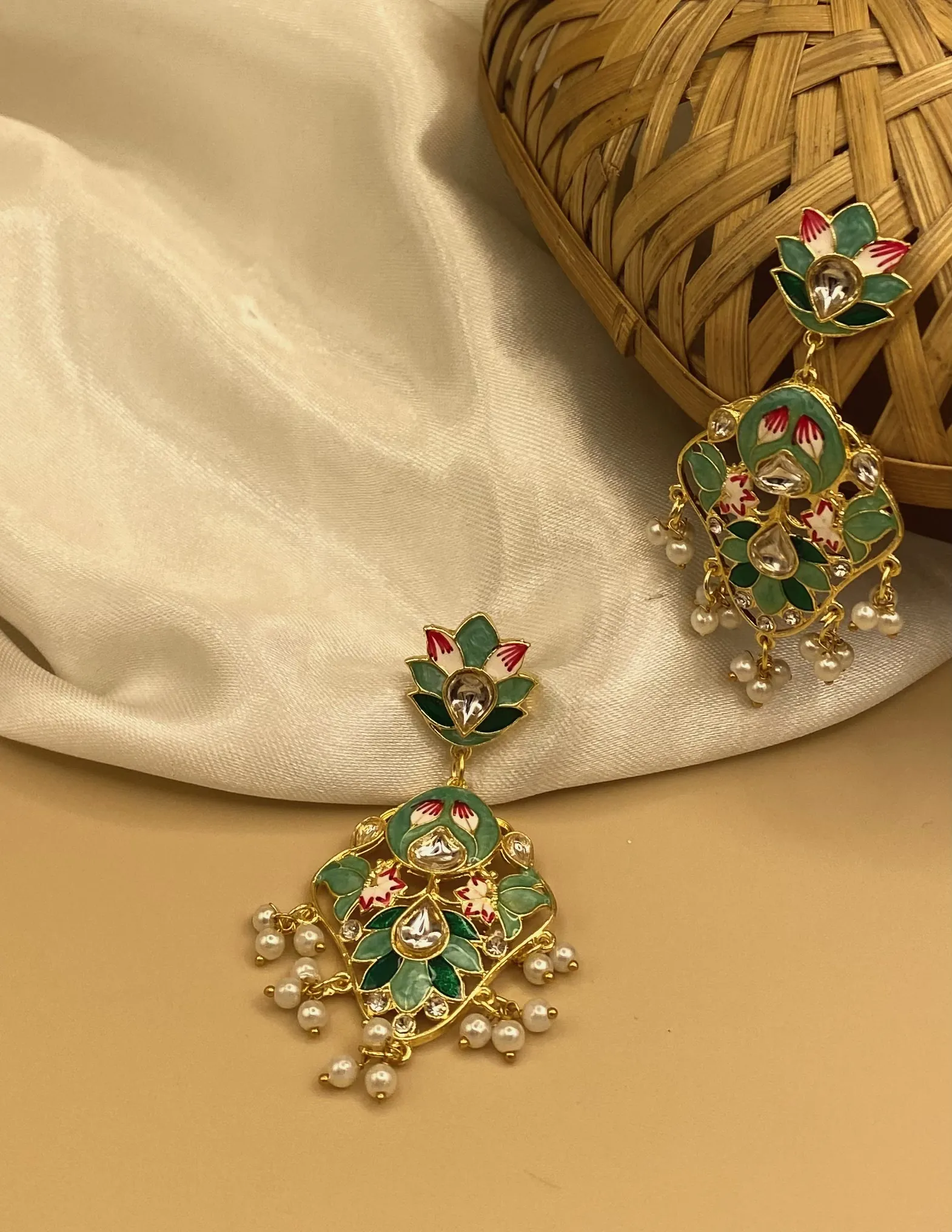 Neelkamal – Mehendi Polish Enameled Floral Drop Earring