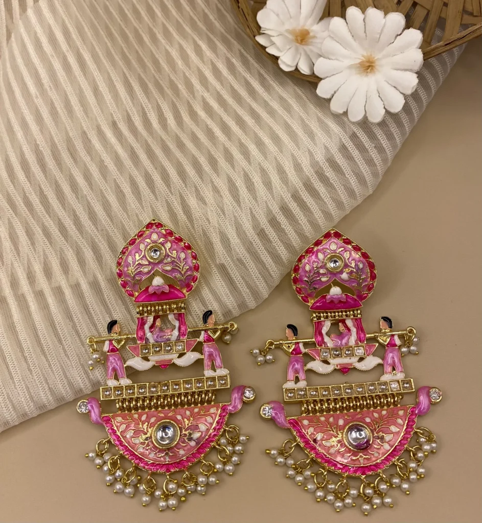 Jashn-e-Gulabi Palki – Mehendi Polish Enameled Doli Jhumka