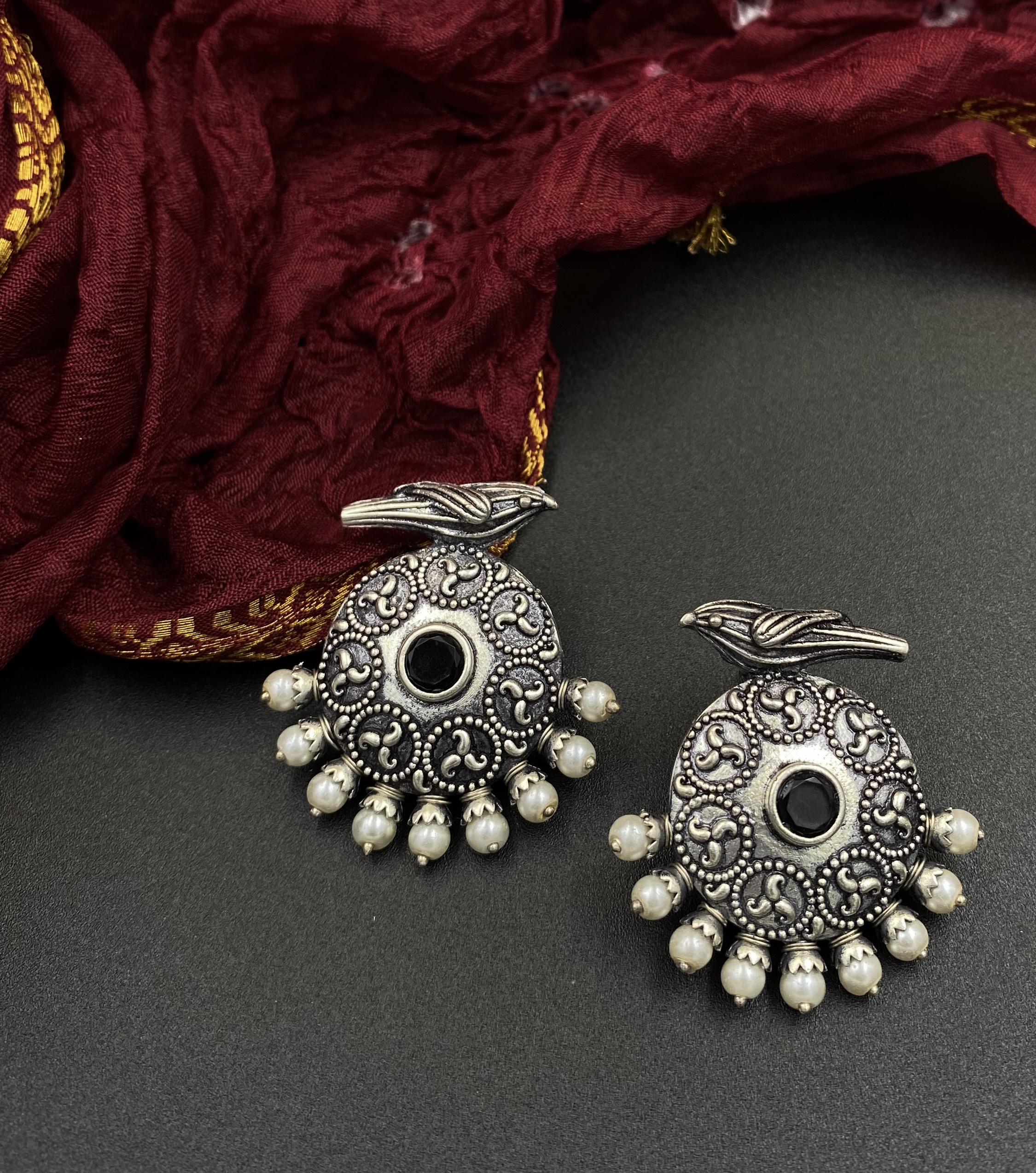 1. Pakshi Mandala Indraneel Drops: This stunning piece is A Circle of Serenity, featuring the soothing Indraneel (deep blue) stone. The intricate Pakshi Mandala (bird circle) represents balance and focus, making them the perfect accessory for when you need to project calm confidence during exams or presentations