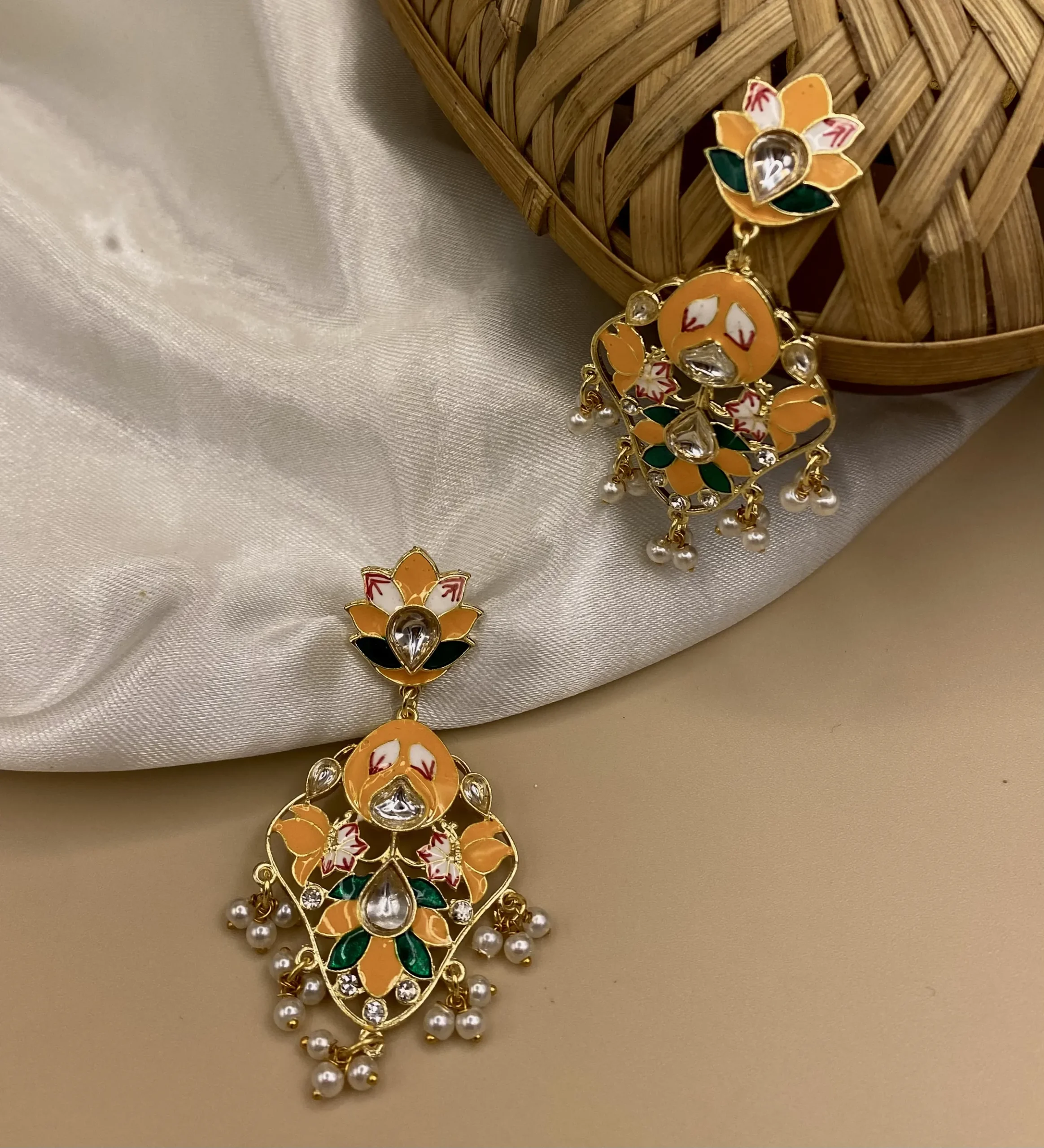 Gurhal – Mehendi Polish Enameled Floral Drop Earring