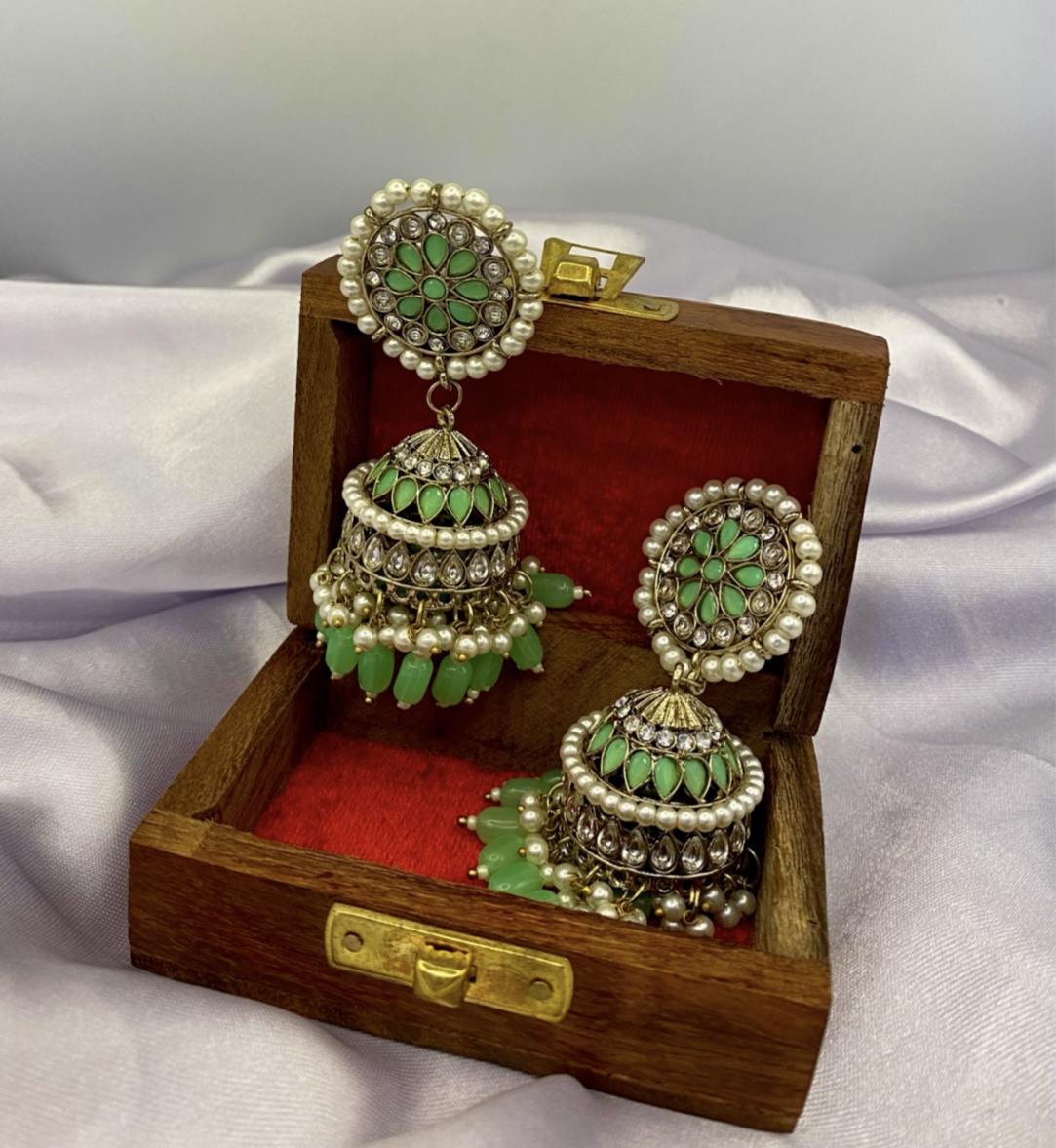 To maintain the brilliant finish and intricate details of your Hari Ruya Jhumki, store them in an airtight