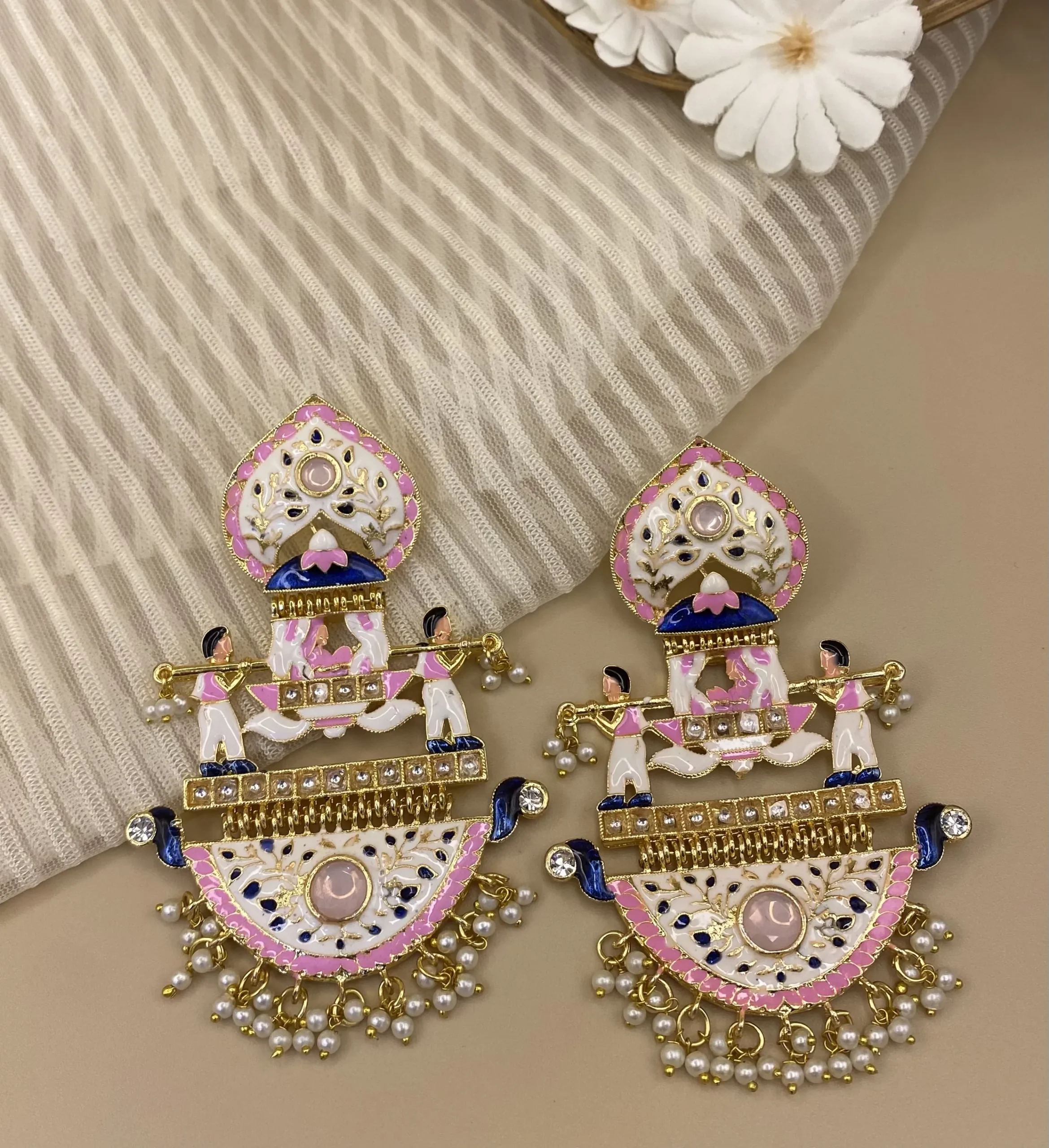 Jashn-e-Gulabi Palki – Mehendi Polish Enameled Doli Jhumka