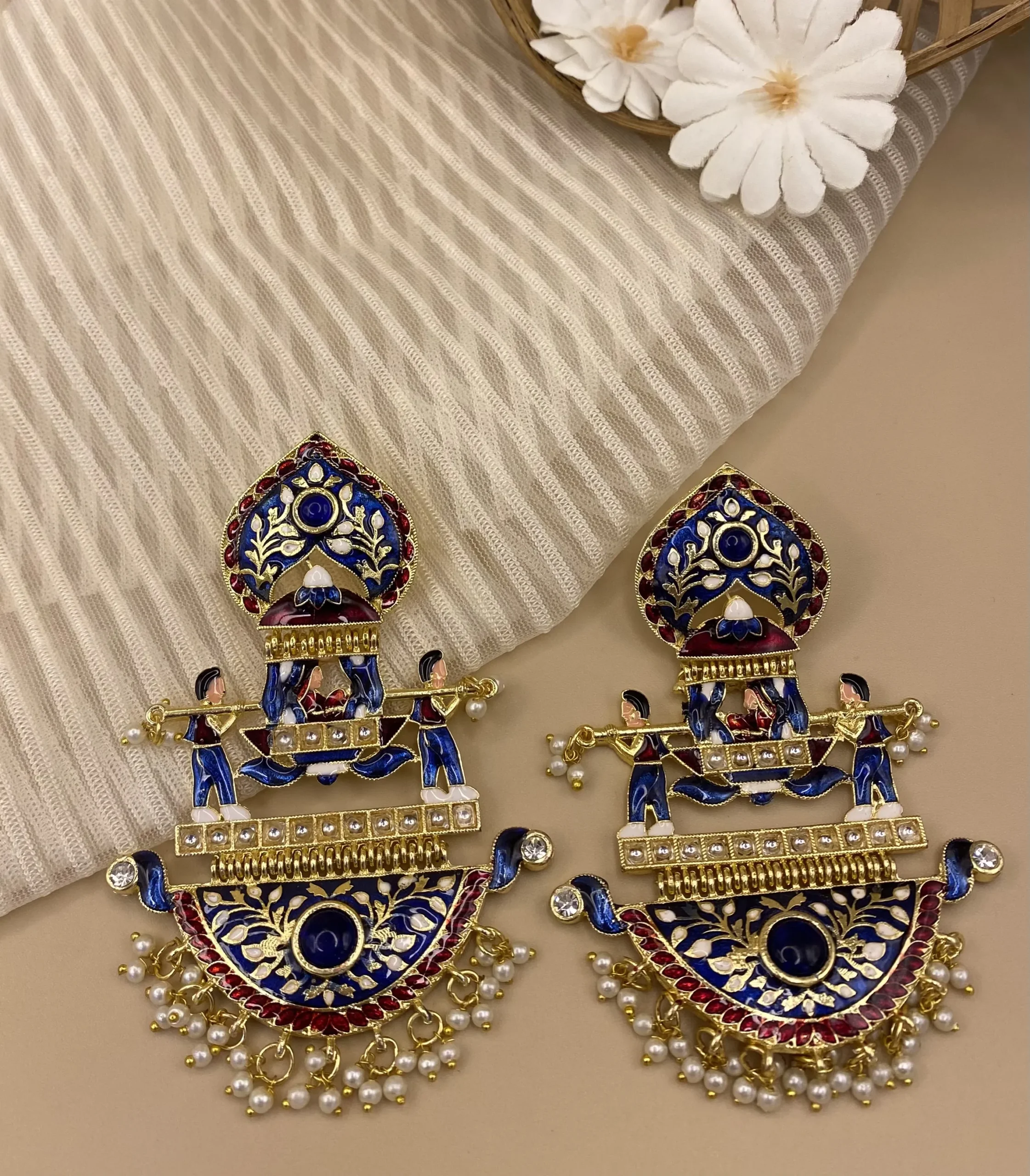 Jashn-e-Neelam Palki – Mehendi Polish Enameled Doli Jhumka