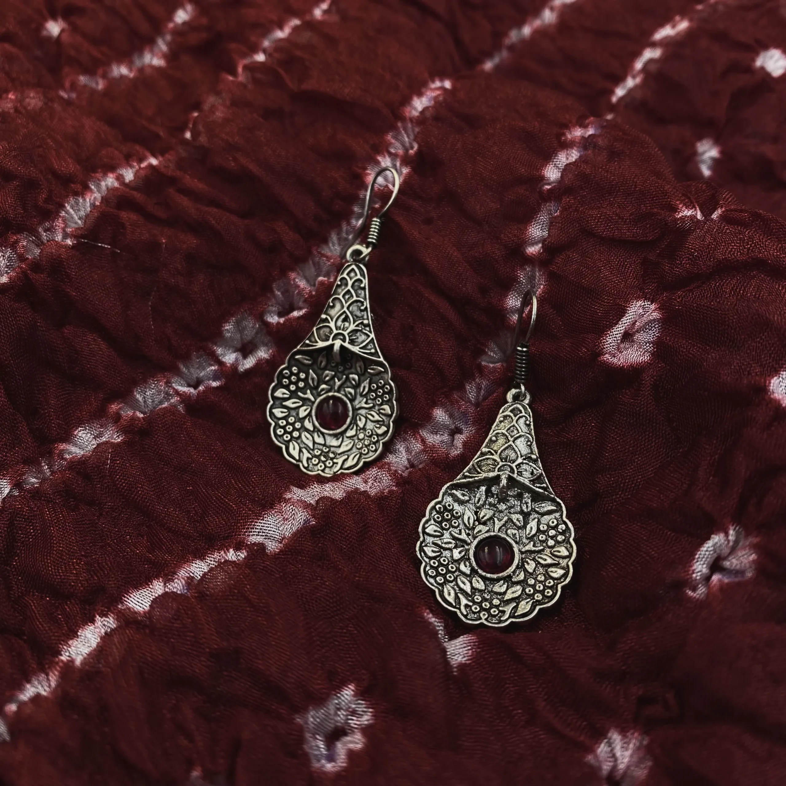 Infuse your style with heartfelt passion with Meraki Rudrani – A Soulful Oxidized Creation. These captivating oxidised earrings are crafted with a unique antique silver-tone finish, embodying dedication and soul in every detail. The design features a delicate, intricately patterned top leading to an elegant drop, centered around a luminous red stone (our ‘Rudrani’ – evoking the vibrant and spirited hue of devotion). This subtle, ethereal accent beautifully complements the rich oxidised metal, creating an aura of timeless charm. Perfect for those who seek to wear a piece that resonates with deep meaning and artistic craftsmanship, Meraki effortlessly enhances any ensemble, from a casual day out to a special evening event, making every moment shine with heartfelt elegance.