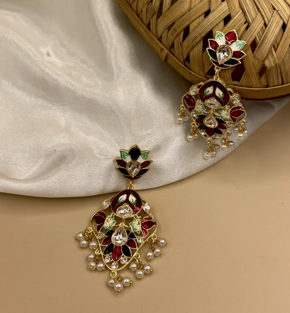 Gurhal – Mehendi Polish Enameled Floral Drop Earring